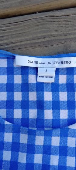 Diane Von Furstenberg Giselle Blue Gingham Stretch Crepe Top Blouse$25Miami, FL