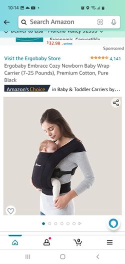 Ergobaby Embrace Cozy Newborn Baby Wrap Carrier (7-25 Pounds), Premium Cotton, Pure Black