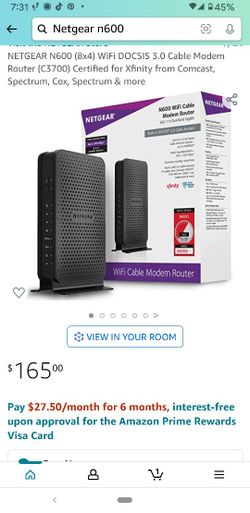 Netgear N600 WiFi Cable Modem Router, Built-in DOCSIS 3.0$80Las Vegas, NV