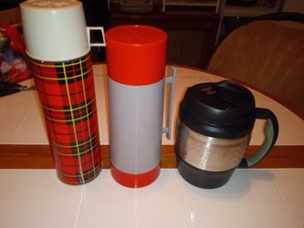Vintage Tall Metal Thermos Bottles With Cups For Work, Picnic, Coffee, Soup And Hot Chocolate $10Philadelphia, PA