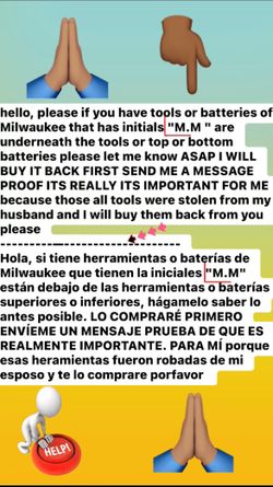 help recover initials M.M Milwaukee tools and batteries$0Los Angeles, CA