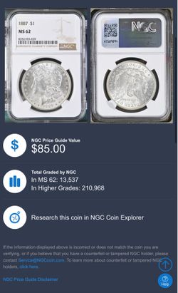 1887 Morgan Silver One Dollar $1 NGC MS62$60Walnut Creek, CA