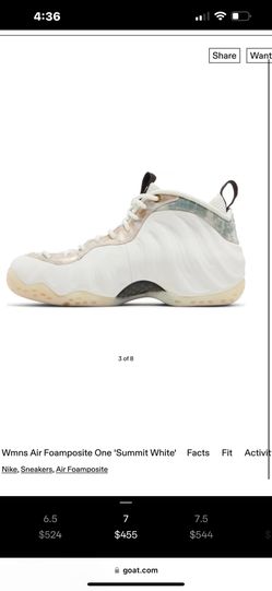 2018 Wmns Air Foamposite One 'Summit White'$65Modesto, CA