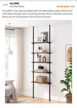 ALLZONE 5 Tiers Narrow Bookshelf, Tall Adjustable Ladder Book Shelf with Open Storage, Floor to Ceiling Tension Mount, Wooden Industrial Bookcase for $65San Diego, CA