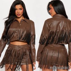 Fashion Nova Sexy 2 Piece Chocolate Brown Fringe Western Rodeo Skirt Set XS$70Fresno, CA