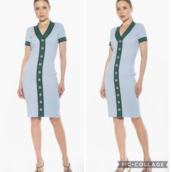 Alexia Admor Otto V-neck Blue & Green Short Sleeve Ribbed Sweater Dress XS$150Fresno, CA