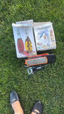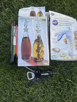 Kitchen Lot Oil And Vinegar Cruets Cookies Press Cheese Shredde And Bottle Opener $28Mount Vernon, WA