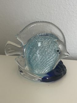 Art Glass Fish Votive Tea Light Candle Holder Blue Party Light Partylite$20El Cajon, CA