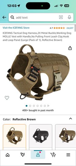 ICEFANG Tactical Dog Harness,2X Metal Buckle,Working Dog MOLLE Vest with Handle,No Pulling Front Leash Clip,Hook and Loop Panel (Large (Pack of 1), Re$10Federal Way, WA