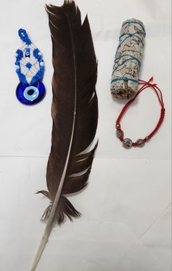 Macrame Good Luck Evil Eye Amulet, Bracelet, sage and Feather.$20Pembroke Pines, FL