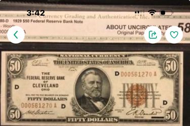 1929 $50 Federal Reserve Note Unc. CLEVELAND GEM$250Hanford, CA