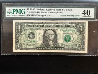 1995 $1USD Back To Front Offset Printing Error$349Hanford, CA