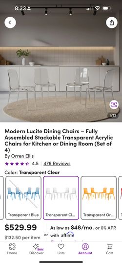 New Modern Lucite Dining Chairs - Fully Assembled Stackable Transparent Acrylic Chairs for Kitchen or Dining Room$395Woodway, WA