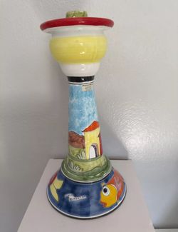 Nino Parrucca Italy Hand Painted Fish Art Pottery Candlestick Candle Holder$220Miami, FL