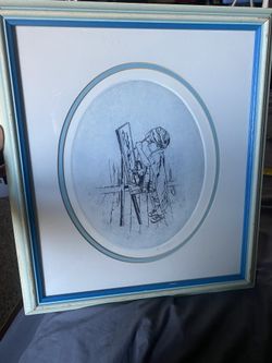 Limited Edition Framed Print of boy painting at easel signed by V. Curtin $20South Norfolk, VA