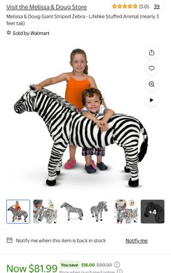 Melissa & Doug Giant Striped Zebra - Lifelike Stuffed Animal (nearly 3 feet tall)$50Alcoa, TN