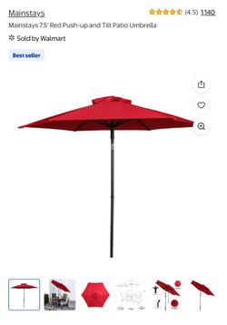 Mainstays 7.5' Red Push-up and Tilt Patio Umbrella$30Alcoa, TN
