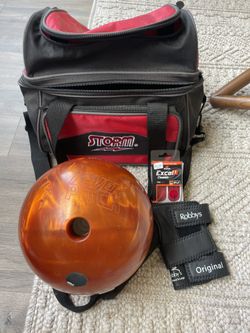 Storm Fever Pitch 15LB bowling ball w/matching bag hand brace & tape$50Fresno, CA