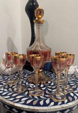 Vintage Bohemian Cranberry Cabochon and Gold Cordial Set$375Bonita Springs, FL