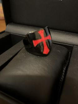 Polished Black Stainless Steel Red Cross Ring Size 10$18Bakersfield, CA