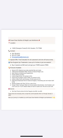 Susan Doan Nutrition&Natural & Weightloss Specials $40Houston, TX