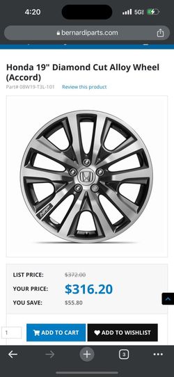 ONE Wheel Only..Honda 19" Diamond Cut Alloy Wheel (Accord)$300Providence, RI