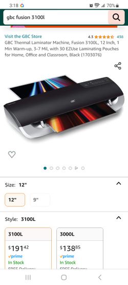 GBC Thermal Laminator Machine, Fusion 3100L, 12 Inch, 1 Min Warm-up, 3-7 Mil, with 30 EZUse Laminating Pouches for Home, Office and Classroom, Black $160Providence, RI
