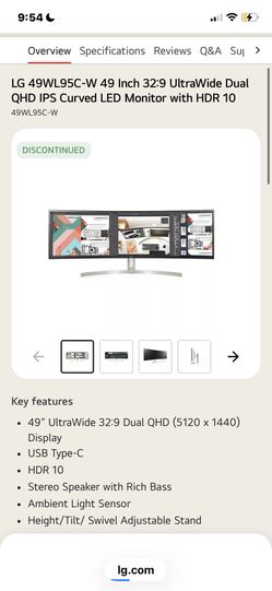 LG 49WL95C-W 49 Inch 32:9 UltraWide Dual QHD IPS Curved LED Monitor$850Pembroke Pines, FL