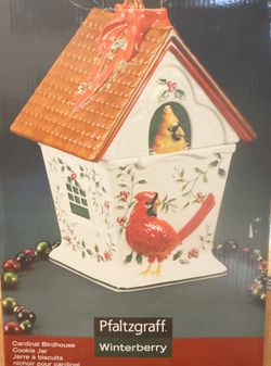 Pfaltzgraff Winterberry Cardinal Birdhouse Cookie Jar Winterberry 2pc Cookie Jar$29Maryland City, Maryland