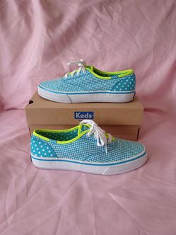 Keds Original Sneakers Lace Up Blue/Aqua Gingham/Polka Dot Shoes Womens Sz 7$18Frostproof, FL