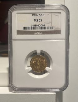 1926 Indian Gold Quarter Eagle $2.50 Coin Certified NGC MS65 $2250 Value$1,700Santee, CA