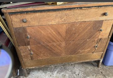 Mid Century Dresser Highboy 3 Drawer Tiger Wood Brass Chest Original Hardware 35” Height 41” Width 19” Depth Built By MORRIS FURNITURE MFG. CO. LOS $75La Mesa, CA