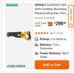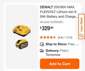 FLEXVOLT 60V MAX Lithium-Ion Cordless Brushless Reciprocating Saw with FLEXVOLT 9. 0Ah Battery and 6 Amp Output Charger$450Mesa, AZ