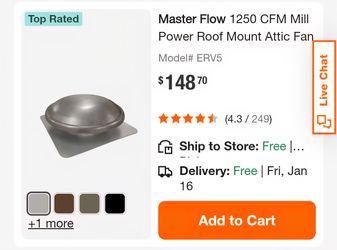 1250 CFM Mill Power Roof Mount Attic Fan$85Mesa, AZ