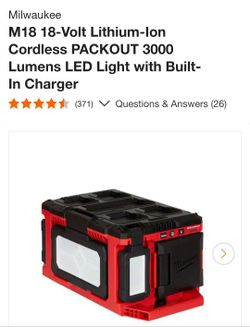 Milwaukee. M18 18-Volt Lithium-lon Cordless PACKOUT 3000 Lumens LED Light with Built- In Charger$160Mesa, AZ