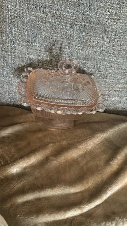 Vintage Indiana Glass Pink Open Lace Edge Pedestal Candy Box Dish with Lid $25Alexandria, VA