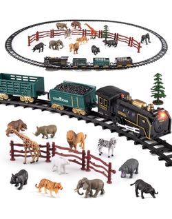 Safari Animals Figures Toy Train Set, Electric Locomotive with Light & Sound, Wildlife African Jungle Zoo Miniature Toys Cake Toppers Bulk Toddler Sto$10Las Vegas, NV