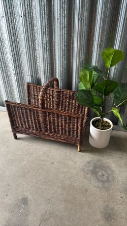 Vintage Basket Woven Wicker Rattan Wood Log Holder Magazine Books $50Elk Grove, CA