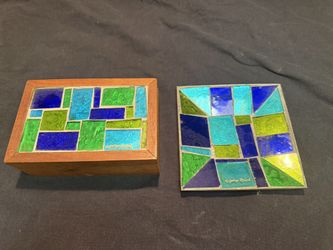 Vintage MCM Mosaic Plate Tray With Matching Mosaic Box By Georges Briard$50Bellevue, WA