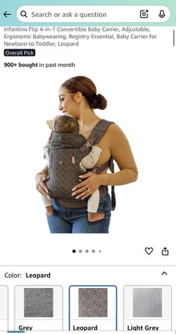 Infantino Flip 4-in-1 Convertible Baby Carrier, Adjustable, Ergonomic Babywearing, Registry Essential, Baby Carrier for Newborn to Toddler, Leopard$10Montclair, CA