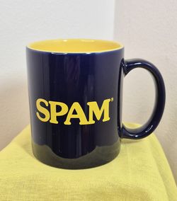 Spam 10 oz Navy Blue Ceramic Coffee Mug Yellow Lettering Double-sidedI$12West Palm Beach, FL