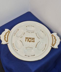 Ceramic Handpainted Gilt Passover Seder Plate w/Handles English Hebrew 16 x 12$34West Palm Beach, FL