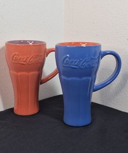 Pair of Vintage Coca-Cola Ceramic Travel Mugs with Lids Colorful Orange Blue$18West Palm Beach, FL