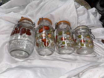 Vintage Set of 4 Arc Spice of Life Glass Canister Jars Mushroom Tomato France$50Miramar, FL