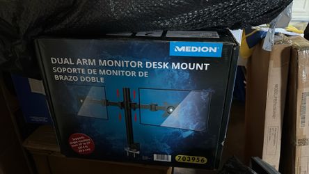 The Medion Dual Arm Monitor Desk Mount is designed to hold two monitors, specifically supporting sizes from 10 inches to 27 inches. $20Covina, CA