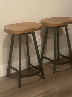 Set Of 2 Industrial Style Backless Saddle Bar Stools With Durable Metal Base And Distressed Real Wood Seats Designed For Small Space H24”$35Bellevue, WA