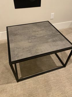 Modern Square Coffee Table With The Matte Black Metal Base Dark Gray Slate Looking Top 27.5”x27.5” H16”$30Bellevue, WA