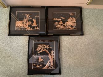 Framed Straw Art Asian Landscape Scene Set Of Three$150Cape Coral, FL