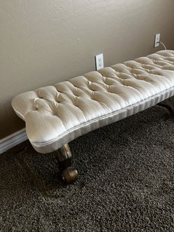 Vintage Bench Vintage bench. Approx 5’ long. Cream velvet upholstery , gold ornate legs. Great for entry or at the end of a bed.$60Glendale, AZ