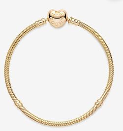 Pandora Heart Closure Snake Chain Bracelet 14k Gold Plated Size 7.1 In 18cm$125Austin, TX
